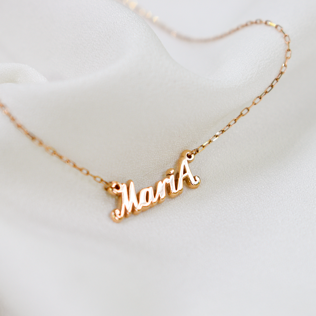 Именное колье можно выполнить с любым именем, как на русском, так и на английском языке. На фото пример изделия, стоимость указана за изделие с таким же весом.