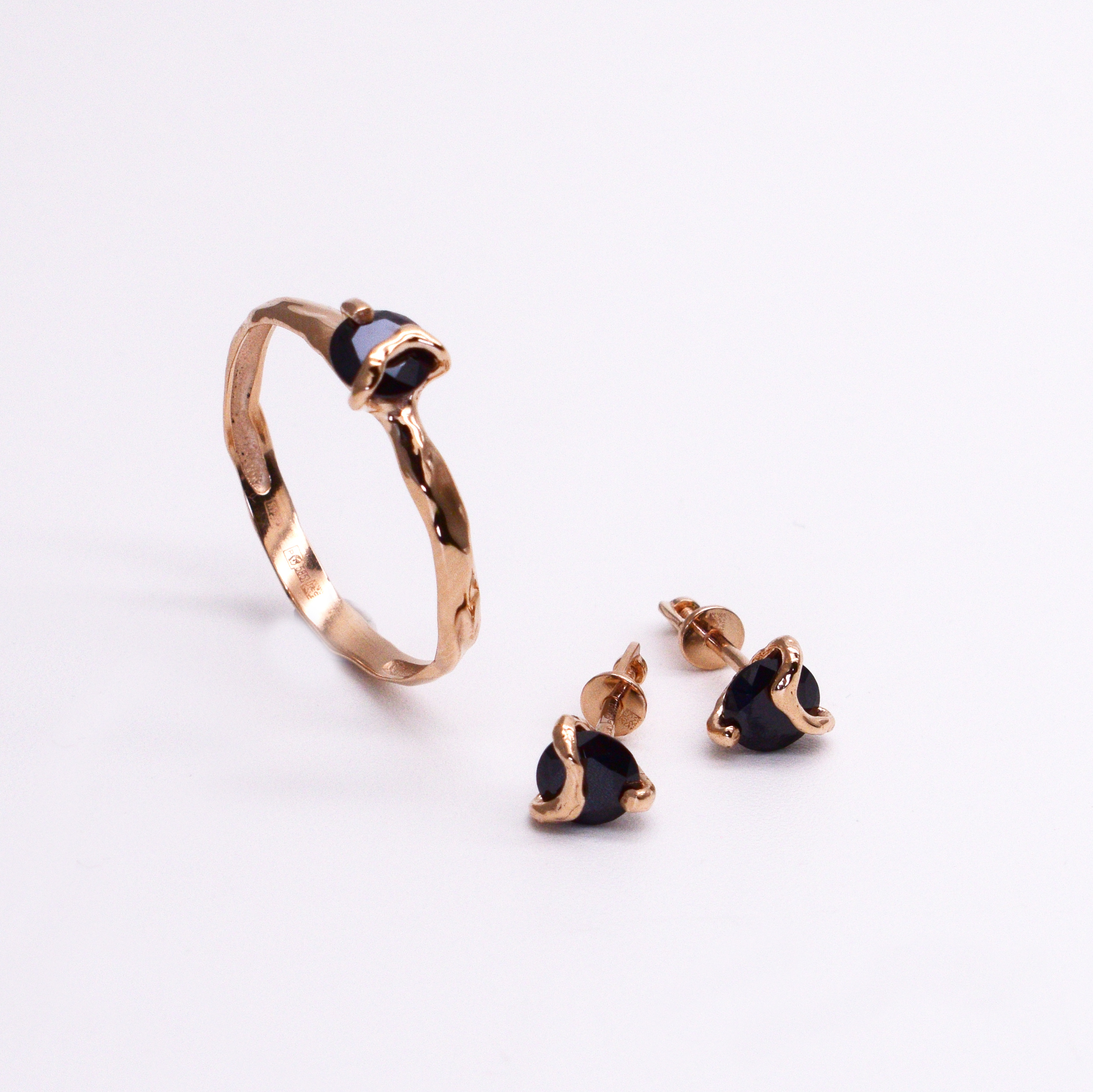 Кольцо с черным фианитом