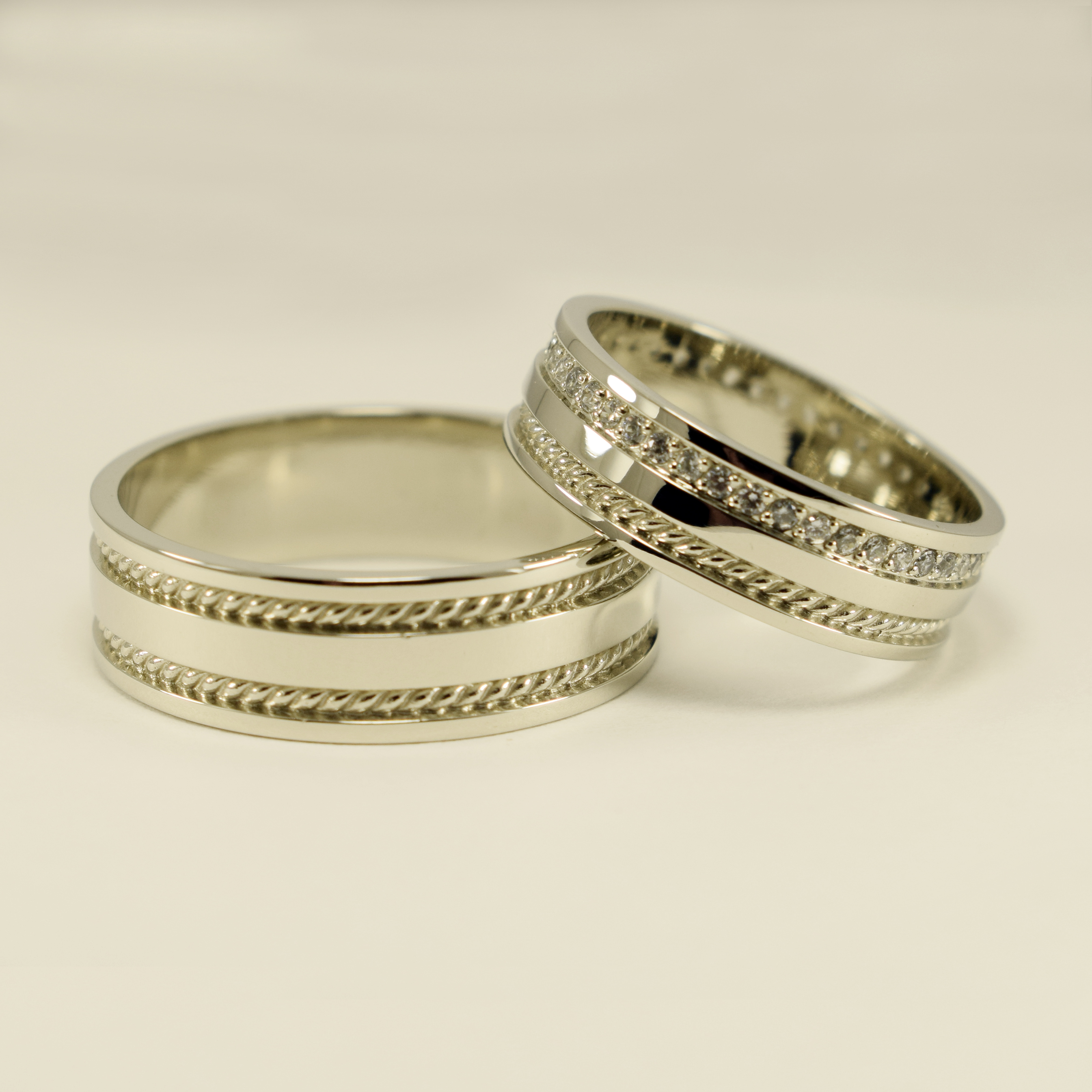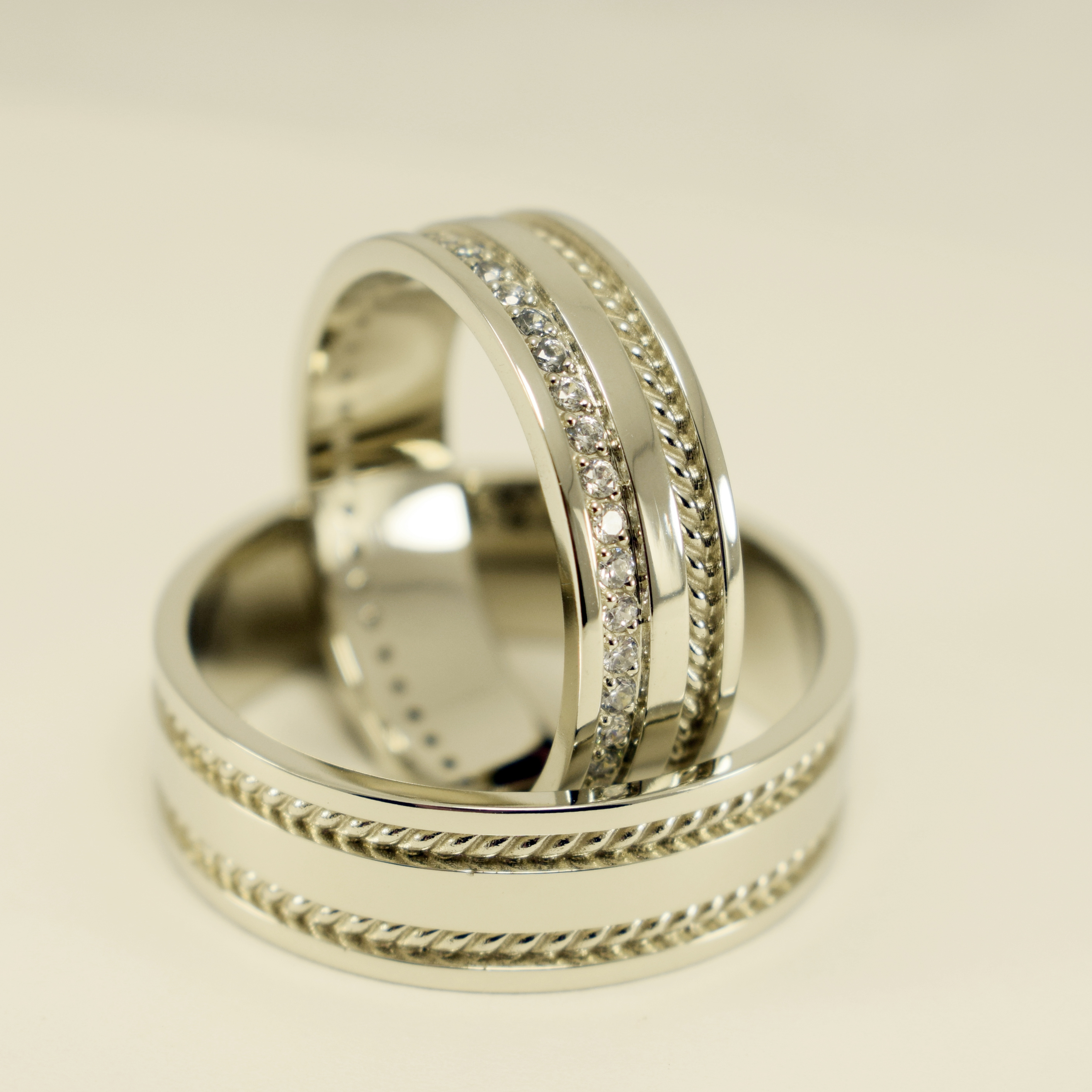 - Белое золото подчеркивает лаконичность этих колец.