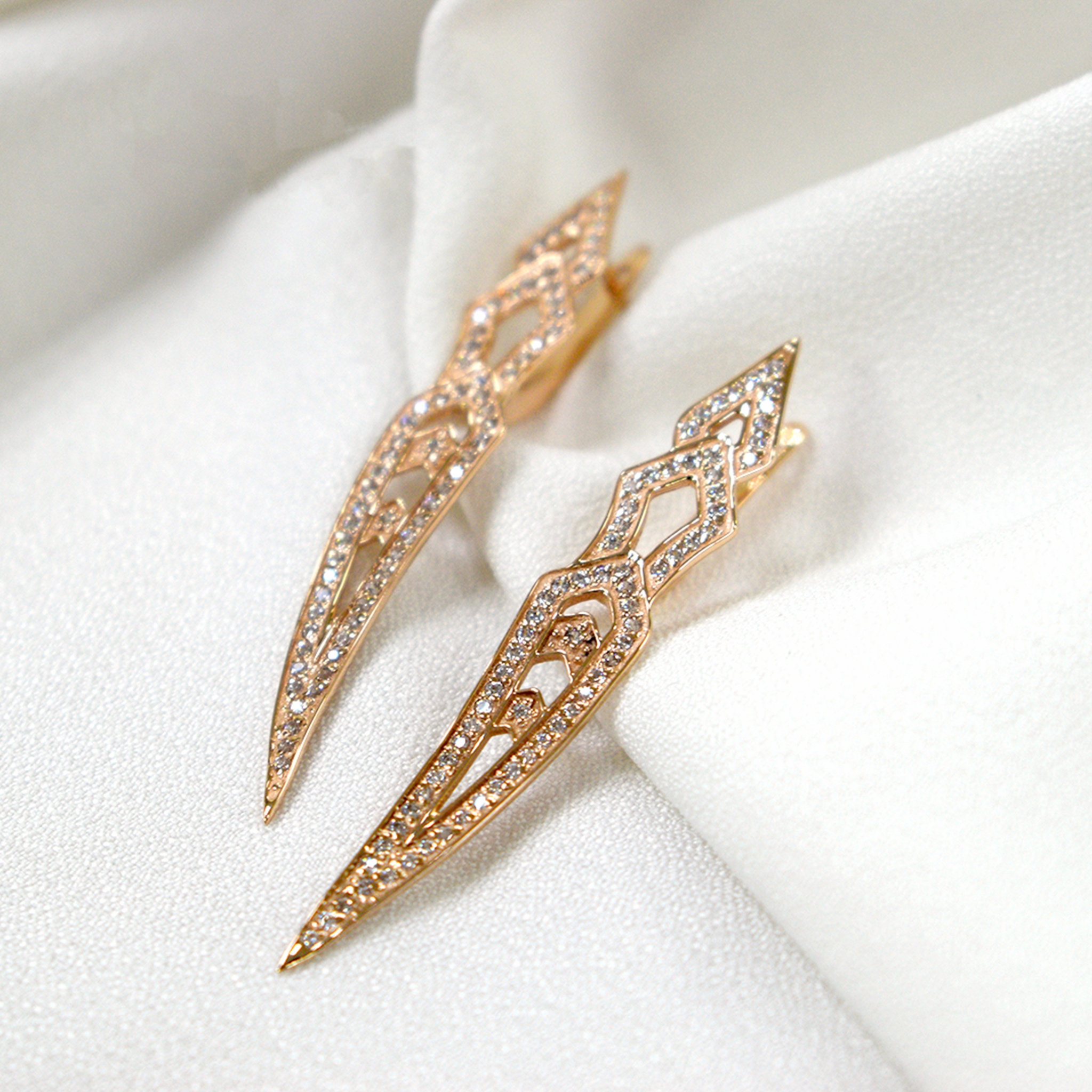 Эти серьги из нашего каталога напоминают остро заточенный кинжал. А мотивы орнамента на них отдаленно похожи на грациозные светильники эпохи ар-деко. Маленькие «лезвия» поблескивают на солнце и манят только самых смелых!